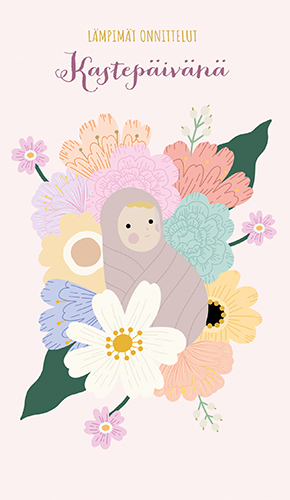 Ihmeitä täynnä on kastepäivän joka hetki, tästä alkaa pienen tytön elämän retki. Kastepäivänä lämpimästi onnitellen